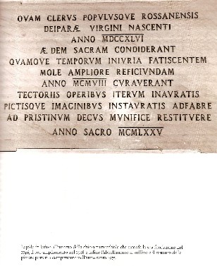 La vecchia chiesa di Rossano è stata distrutta da un incendio la notte del 10 agosto del 1719 che ne lasciò in piedi solo le mura perimetrali, essa era situata dove c'è ora la vecchia casa del cappellano.
